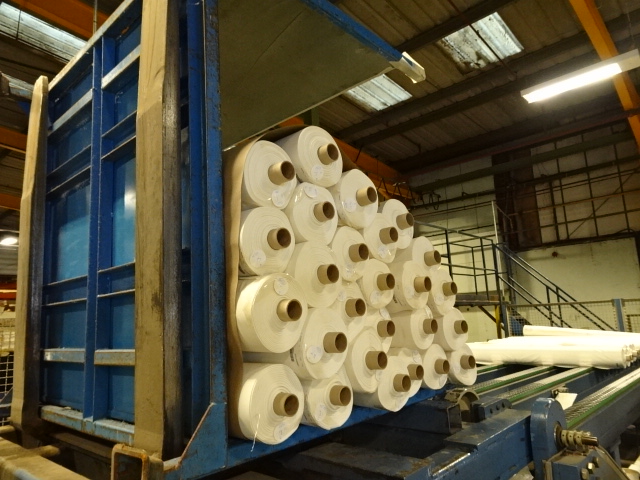 Conveyor feed of fabric rolls<br>